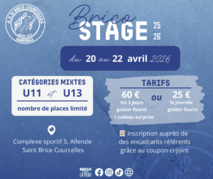 Nous proposons aux catégories U11 et U13 masculins et féminines de participer à un 𝘀𝘁𝗮𝗴𝗲 𝗱𝗲 𝗽𝗲𝗿𝗳𝗲𝗰𝘁𝗶𝗼𝗻𝗻𝗲𝗺𝗲𝗻𝘁, encadré par des 𝗲𝗻𝘁𝗿𝗮𝗶𝗻𝗲𝘂𝗿𝘀 𝗱𝗶𝗽𝗹𝗼̂𝗺𝗲́𝘀, pendant les vacances d’Avril 2026.