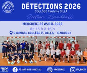 Depuis 2021, sous la houlette de la ligue Grand Est, le club de AS ST BRICE COURCELLES HANDBALL propose aux joueurs, souhaitant une formation scolaire et sportive, d’entrer en Section Sports Études au sein du Lycée Arago de Reims. L’objectif est d’intégrer la section dès la classe de 2nde au Lycée Arago de Reims afin de favoriser la réussite des jeunes tant au niveau sportif que scolaire. À noter que le lycée Arago possède un internat pouvant accueillir les joueurs non rémois (places limitées). La volonté est de permettre à ces joueurs de bénéficier d’un apport de contenus grâce à des séances spécifiques et complémentaires aux séances clubs : préparation physique, athlétisation, savoir-faire individuel au poste … encadrés par Yohan Herbulot, entraineur de la Nationale 1 Masculine de l’ASSBC Handball et Hugo Bonnard, joueur de N1M et entraineur des Bricos. Procédure d’inscription 2026-2027 :Section Sport Études HANDBALL