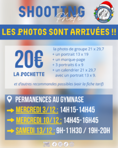 🔹 la 𝗽𝗼𝗰𝗵𝗲𝘁𝘁𝗲 𝗰𝗼𝗺𝗽𝗹𝗲̀𝘁𝗲 : 𝟮𝟬 € avec la photo de groupe 21 x 29,7 + un portrait 13 x 19 + un marque-page + 3 portraits 6 x 9 + un calendrier 21 x 29,7 avec un portrait 13 x 9.